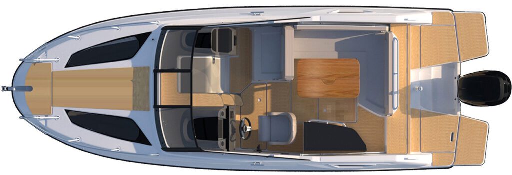 755 Cruiser’ın küpeşte yüksekliği ve geniş ön camı sizi ve misafirlerinizi güvende ve kuru tutar. Kabinin içindeki geniş camlar, bu boy bir teknede bulabileceğiniz en iyi manzara seyrini sağlar. Teknenizi opsiyonlar ile kendi ihtiyaçlarınıza göre dizayn edebilirsiniz. Farklı Mercury motor seçenekleri de size kullanımınıza uygun gücü edinmenizi sağlar.
